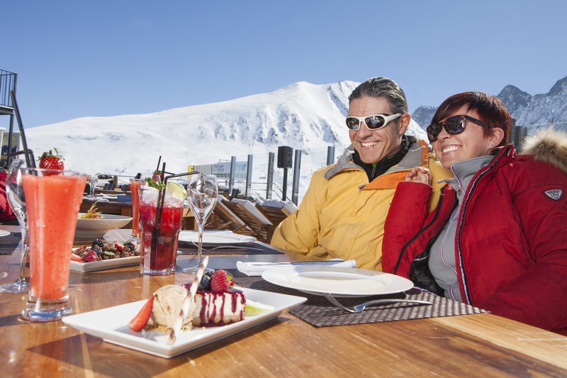 Under den starka solen kan du avnjuta en underbar måltid i någon av de 40 olika restauranger som är belägna uppe i de fantastiska och väl preparerade backarna.