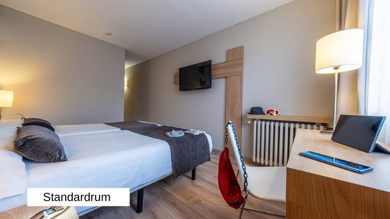 Standardrum passar till 2 personer och och några av dessa rum kan man få med connecting doors. Rummet har 2 separata bäddar 105x190.
