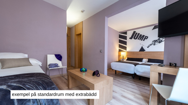 Select room passar till 3 personer (både barn och vuxna). Rummet har 2 separata bäddar 105x190 och en extrabädd 90x190.