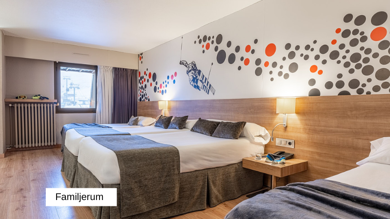 Hotel Sporting är ett 4* hotell som är ett av våra populäraste boenden i Pas de la Casa. Perfekt läge mitt i centrum och endast ca 80 m till liften. Rummen är bekväma med läcker design och många av rummen har en walk in closet till alla skidkläder och packning. Även maten håller hög nivå och du kan njuta av olika rätter varje dag. Hotellet har även en trevlig bar där du kan slappna av med en god drink.