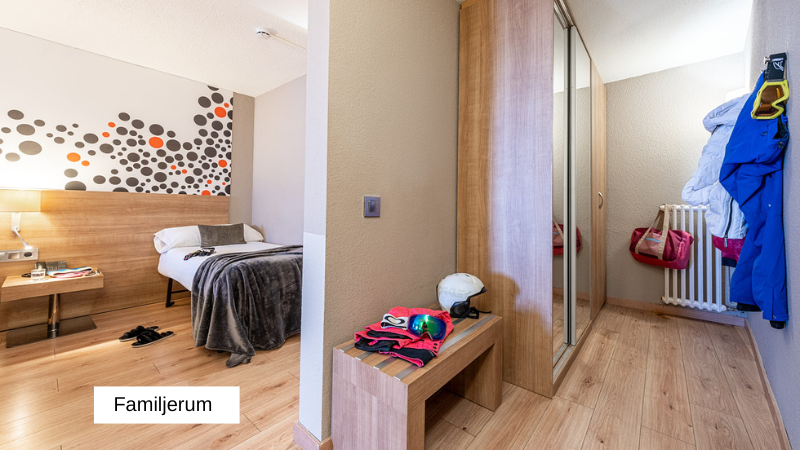 Familjerum passar till 4 personer, 2 vuxna och 2 barn, max 11 år. Rummet har 2 separata bäddar 0.90x190 och två extrabäddar 0.90x190.